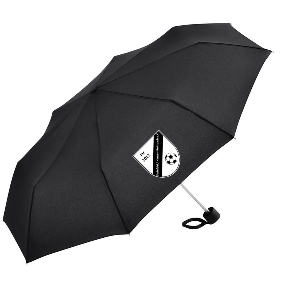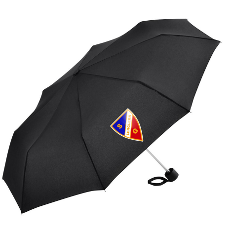 Auf schlechte Witterung immer gut vorbereitet: Mit dem praktischen Taschenschirm im trendigen Look. Mit seinem praktischen Griff lässt er sich gut und sicher halten. Der Schirm ist leicht aufzuspannen und lässt sich genauso unkompliziert zusammenklappen. Geöffnet besitzt er eine schöne Größe und zeigt den Vereinsprint. Die Gestellkonstruktion zeigt sich robust. In geschlossenem Zustand wird er fixiert und passt in jede Tasche. Hübsch und zweckmäßig: der praktische öffnet & schließt per Knopfdruck (am Griff). Ein absolutes Must-Have.